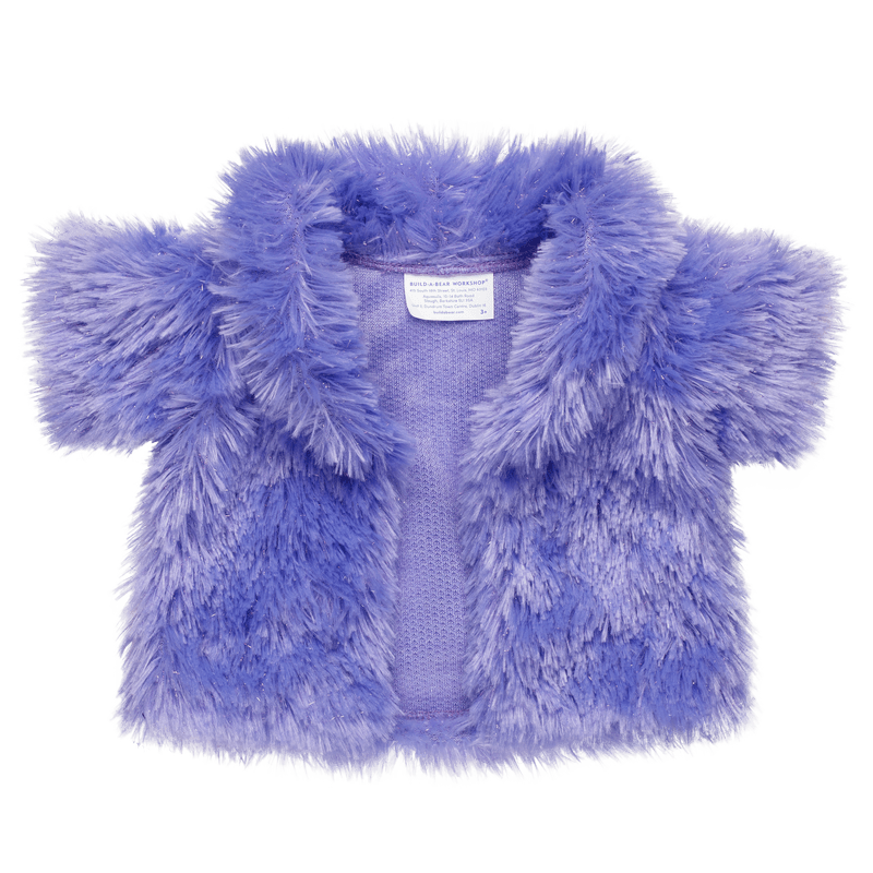 This luxurious purple faux fur jacket for stuffed animals has just the right amount of sparkles!